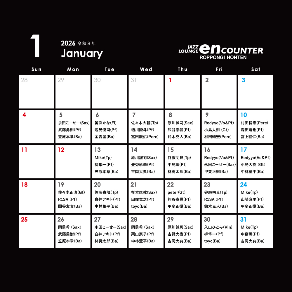 encounter(エンカウンター)は、銀座・赤坂・六本木に展開する会員制のジャズラウンジ。